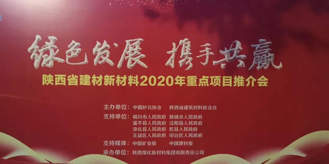 2020年1月11日,以“绿色发展,携手共赢”为主题的陕西省建材新材料2020年重点项目推介会在西安隆重举行。此次会议由中国砂石协会、陕西省建筑材料联合会主办,陕西煤化新材料集团有限责任公司承办。