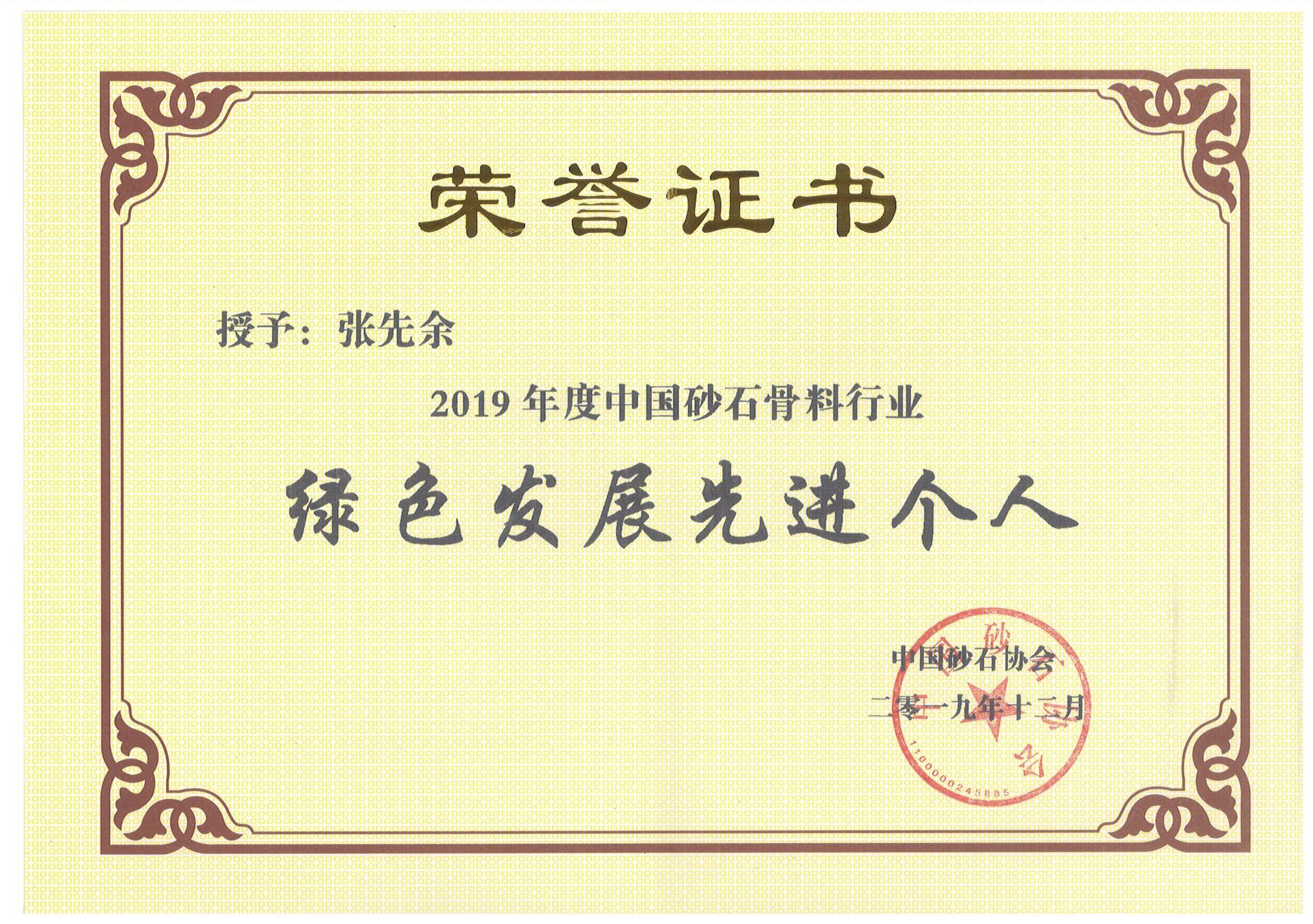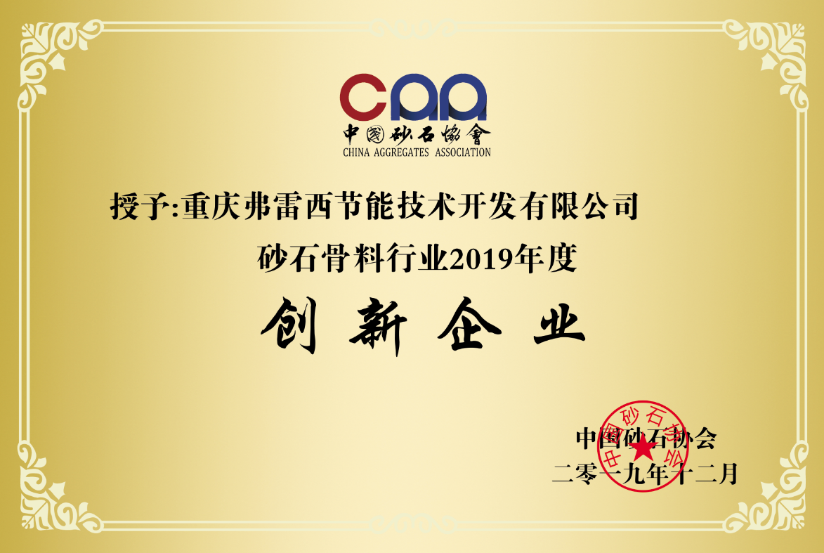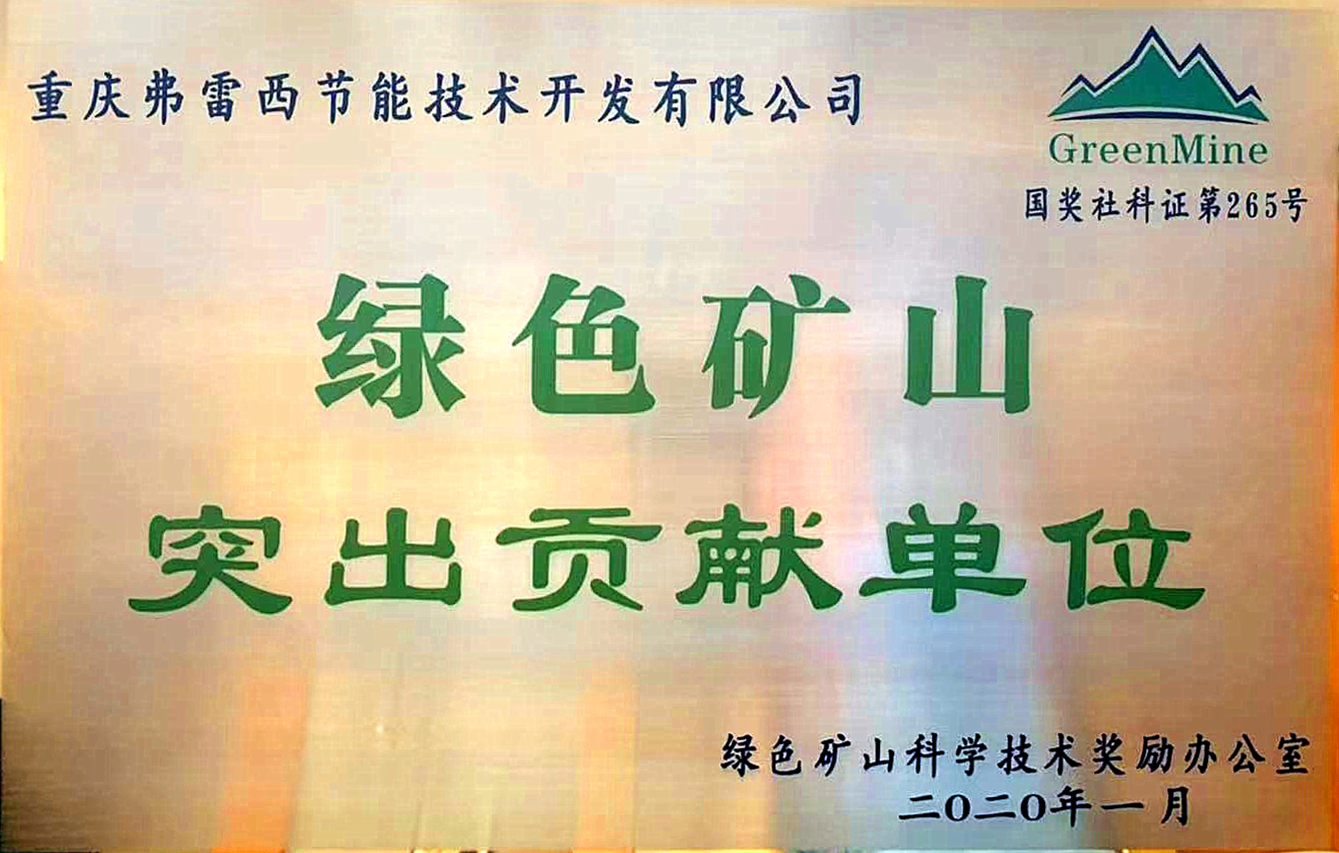 弗雷西凭借先进技术,2019年12月在“第六届中国国际砂石骨料大会”上揽获砂石骨料行业“创新企业”大奖,董事长张先余先生当选中国砂石协会常务理事并荣获“绿色发展先进个人”奖,公司专家顾问王自强先生荣获“突出贡献奖”。同时,弗雷西也始终以“绿色矿山”为基准,实现了“绿色、智慧、共享”。2020年1月在北京“绿色矿山建设论坛”,弗雷西荣获2019年度《绿色矿山突出贡献奖》,董事长张先余先生荣获2019年度《绿色矿山突出贡献个人奖》。